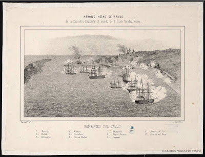 Hace algún tiempo que leí la novela “La vuelta al mundo en la Numancia”, de don Benito Pérez Galdós, que forma parte de la cuarta serie de los Episodios Nacionales. En ella se cuenta con bastante detalle el ataque de la Armada Española a las plazas de Valparaíso, en Chile, y del Callao, en Perú.